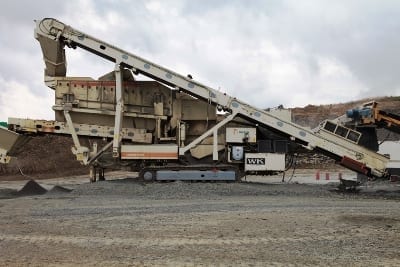 From left to right are WK Crushing’s site manager, Dirk van Schalkwyk, and Barloworld Equipment Metso Mobile’s sales consultant, Lantie van der Merwe. In the background is WK Crushing’s Metso Lokotrack LT1100 cone crusher and screen on one chassis (forming the closed circuit) feeding into the LT7150 VSI